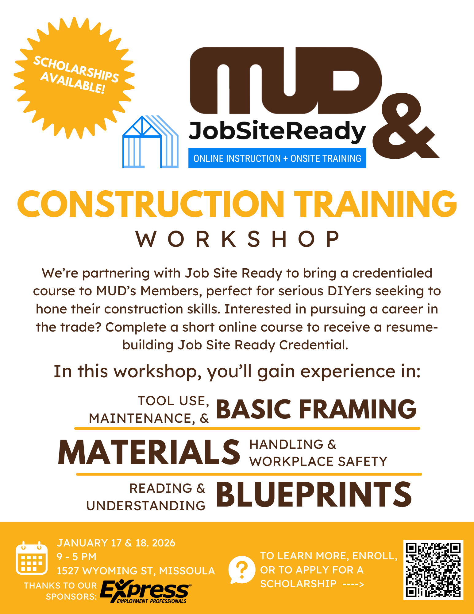 *Upcoming Workshop at MUD: Construction Training with Job Site Ready*